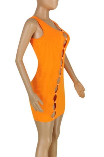 hole solid color sexy dress